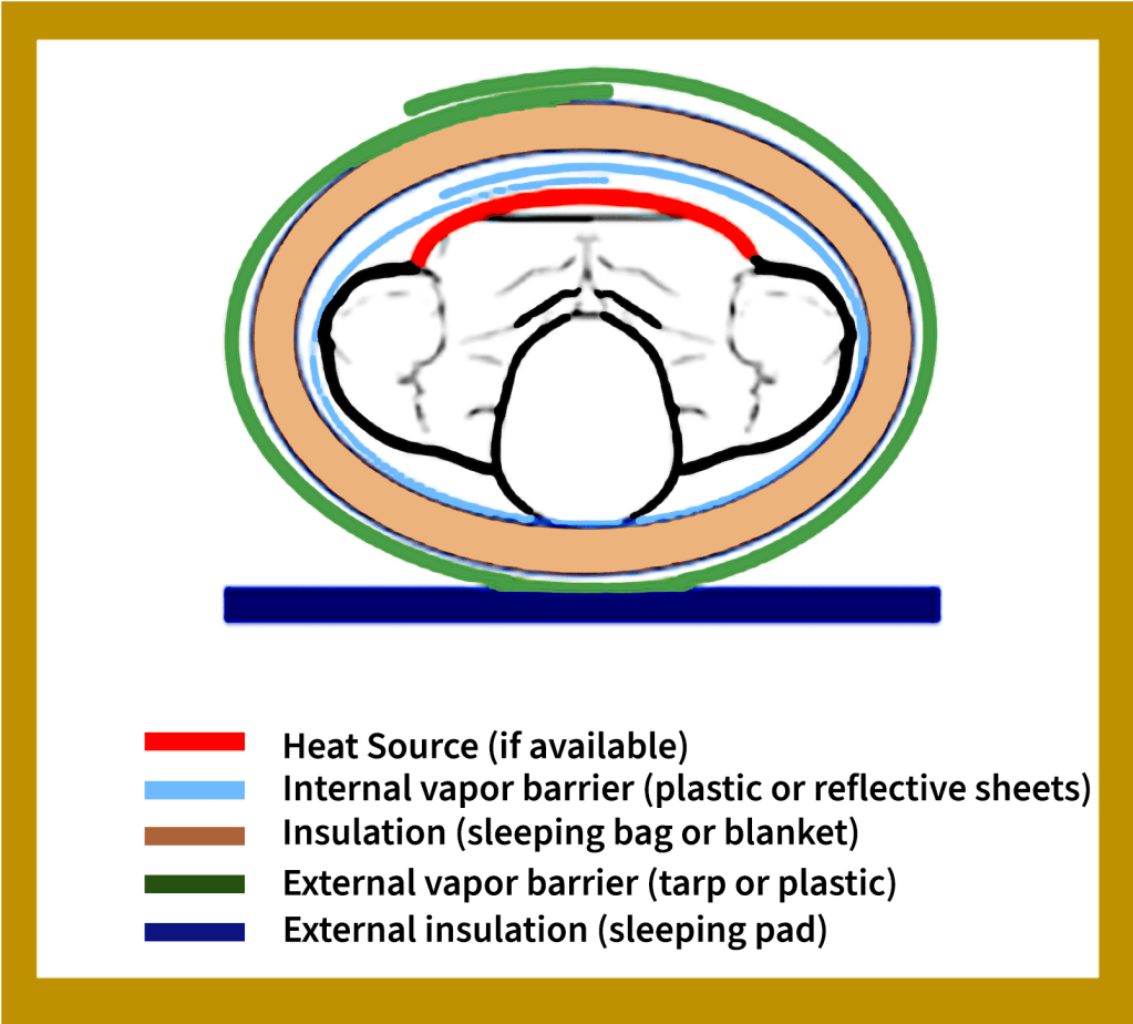 - Marrón: Manta de tela o saco de dormir